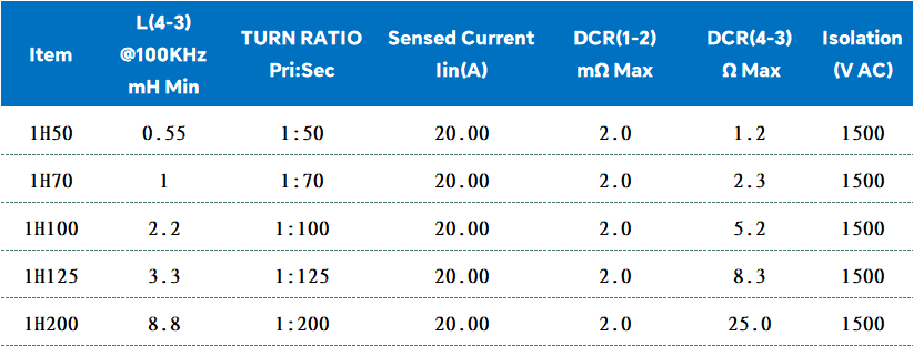 4. 初级低电阻,检测电流更高;次级低分布电容,产品性能优异;